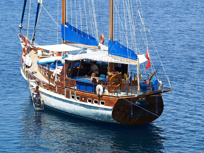 Ein schönes Gulet mit schnittiger Form, nach einem sorgfältigen Komplett-Refit wie neu, mit funktional ausgestatteten Kabinen und zeitgemäßer Ausrüstung, viel Platz an Deck, guten Segeleigenschaften, einem sehr aufmerksamem Service von der engagierten Crew und köstlichen Speisen vom hervorragenden Koch, das ideale Gulet für eine anspruchsvolle Familie mit Kindern oder eine kleinere Gruppe von Freunden, besonders für segelbegeisterte Gäste, die eine besondere Blaue Reise auf einem Segelgulet an der türkischen Küste wünschen.