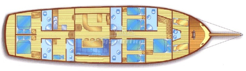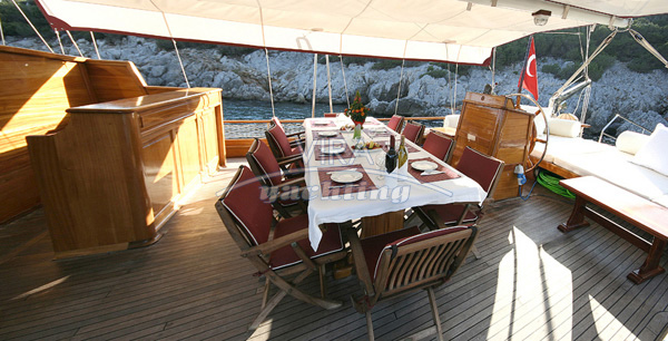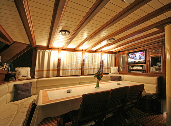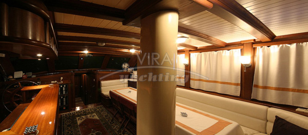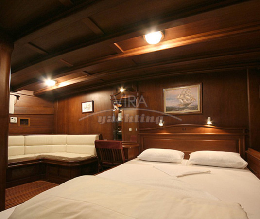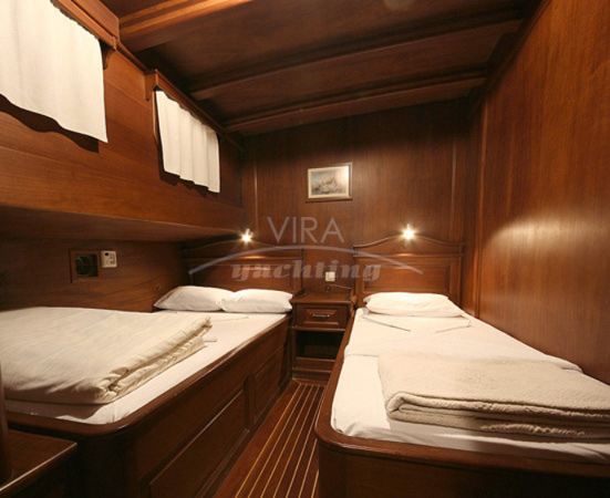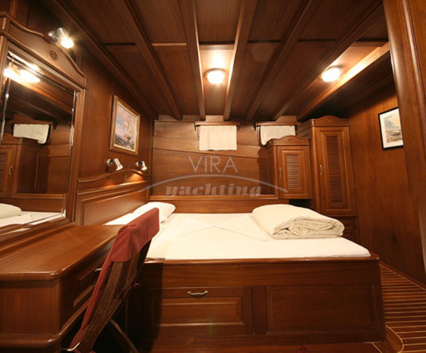 Ein hochwertiges und perfekt ausgestattetes Bodrum-Gulet mit edler Mahagoni-Einrichtung, komfortablen Kabinen, großzügigen Decksbereichen, guten Segeleigenschaften und aufmerksamem Service von sehr gastfreundlicher Crew. Die Kabinenaufteilung ist ideal sowohl für Familien mit Kindern als auch für mehrere Paare, die einen Törn auf einem Segel-Gulet an der türkischen Küste wünschen.