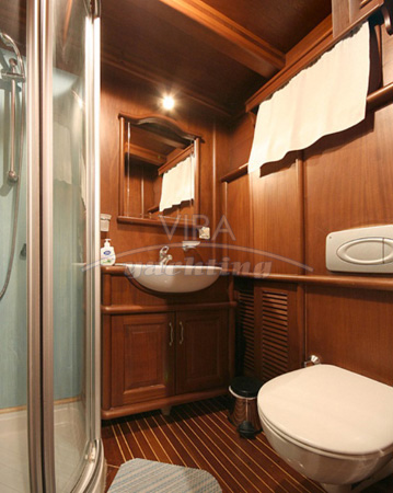 | Unterbringung | • Für max. 10 Gäste in 5 Kabinen (alle mit separatem Bad) 1 Masterkabine mit Doppelbett und Sofa 2 Kabinen mit Doppelbett 2 Kabinen mit Doppel- und Einzelbett Bäder mit Waschbecken, Duschkabine, Spül-WC • Salon mit Essbereich und Bar • Separate Crewkabinen |