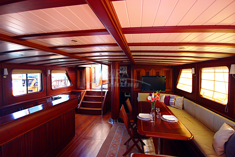Ein neueres Super-Luxus-Gulet aus Bodrum mit klassischem Mahagoni-Interieur und modernen dekorativen Akzenten, großzügig geschnittenen und komfortablen Kabinen, weiten und eleganten Decksbereichen sowie einem makellosen Service von ihrer erfahrenen Crew. Das Gulet verfügt über eine hochmoderne und überkomplette Ausrüstung, incl. Wi-Fi und Jet-Ski und ist das perfekte Boot für 1-2 Familien oder mehrere Paare mit höchsten Ansprüchen, die eine Luxus-Blaue-Reise mit allem Komfort und in stilvollem Ambiente an der Küste der Türkei in privater Atmosphäre genießen möchten.