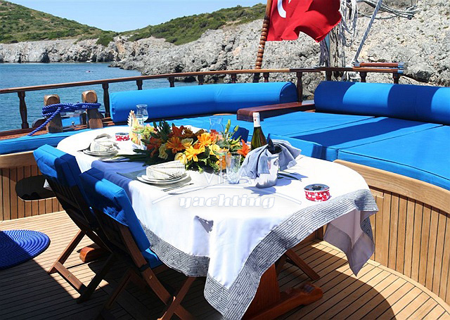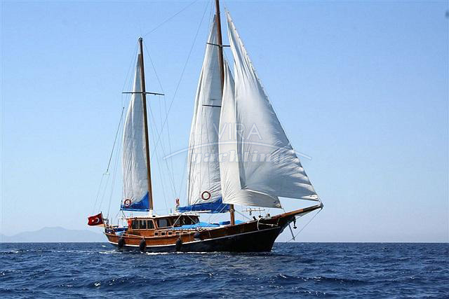 Ein klassisches Rundheck-Gulet aus Bodrum mit schönen Linien und maritimem Ambiente, zeitgemäßer Einrichtung, guter technischer Ausstattung und einer sehr gastfreundlichen Crew. Die Innengestaltung mit einer Masterkabine ist ideal für einen privaten Familientörn und auch die perfekte Wahl für eine Hochzeitsreise an der türkischen Küste.