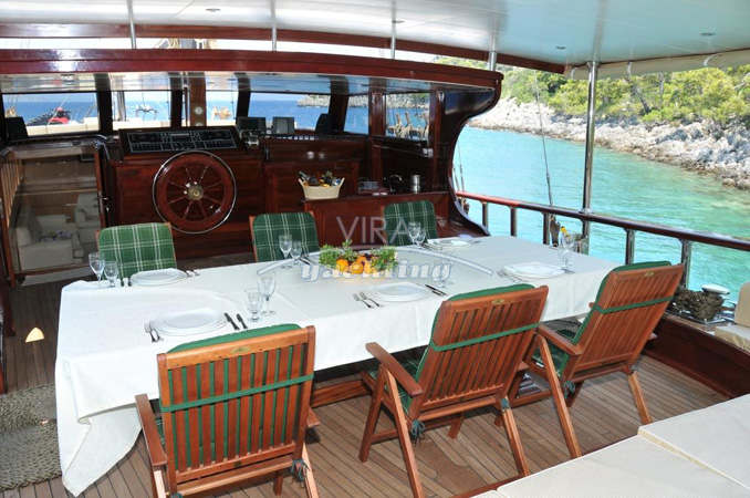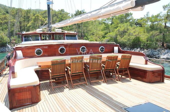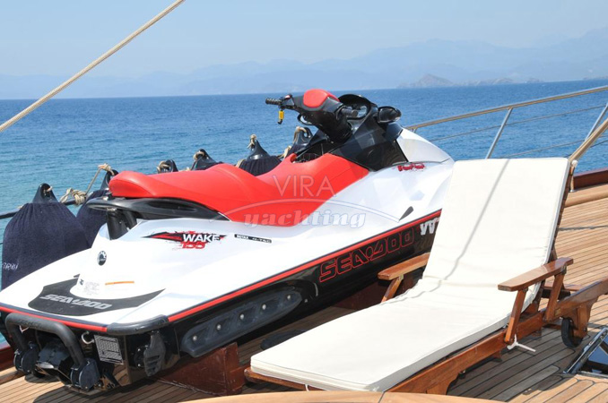 Dieses schöne Gulet aus Fethiye wurde erst kürzlich komplett und sorgfältig rundum erneuert. Ursprünglich für die private Nutzung durch den Eigner konzipiert, bietet es sehr luxuriöse und helle Innenbereiche in modernem Design und sehr großzügige Decksbereiche. Die überkomplette technische Ausstattung beinhaltet eine breite Palette an Unterhaltungselektronik, Jetski und Außen-Whirlpool. Die Aufteilung mit 2 großen und 1 kleinen Masterkabine ist ideal für 2 anspruchsvolle Familien mit Kindern oder mehrere Paare, die ein Super-Luxus-Gulet für eine Blaue Reise in elegantem Ambiente und privater Atmosphäre in der Türkei genießen möchten.